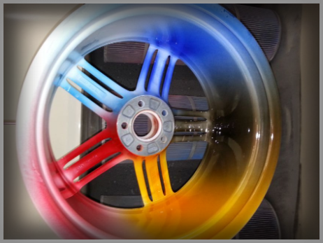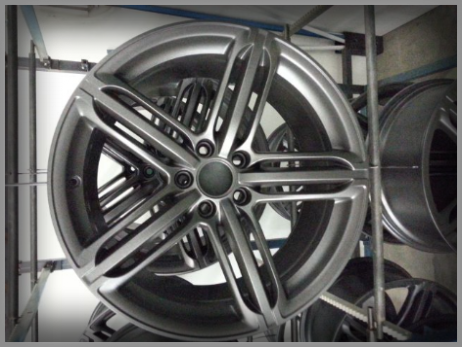 Beim Pulverbeschichten  werden basisgereinigte, hitzebeständige Teile wie z.B. Alufelgen, Bremssättel, Achsen usw… elektrostatisch aufgeladen und mit einer speziellen Farb- Pulverschicht gleichmäßig überzogen. Diese Farbschicht wird anschließend bei einer
