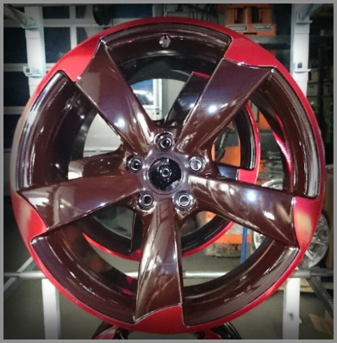 Lassen Sie Ihre Felge vorher bei uns hochglanzverdichten und zusätzlich mit einer unserer Lasurfarben farbig glänzen!